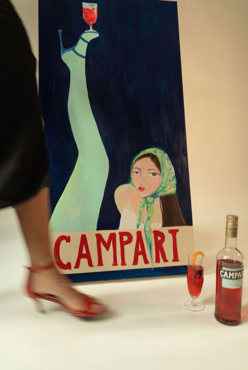 I was recently commissioned by the ICONIC Campari to create a painting in the spirit of their vintage advertising — a visual love letter to their iconic legacy 🇮🇹♥️