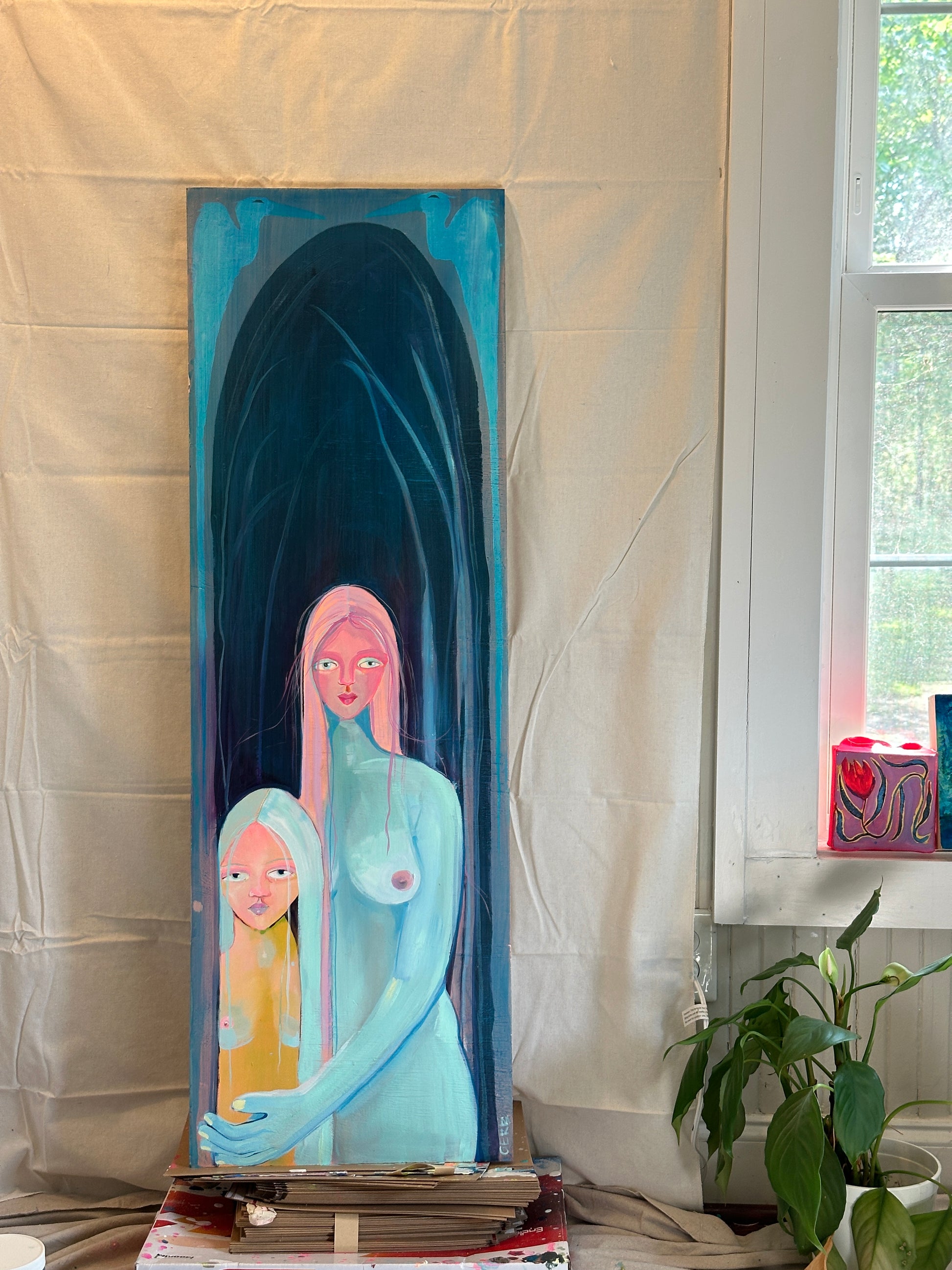 Painting comes ready to hang. Price includes UPS shipping within the U.S. Please allow up to 2 weeks for delivery.