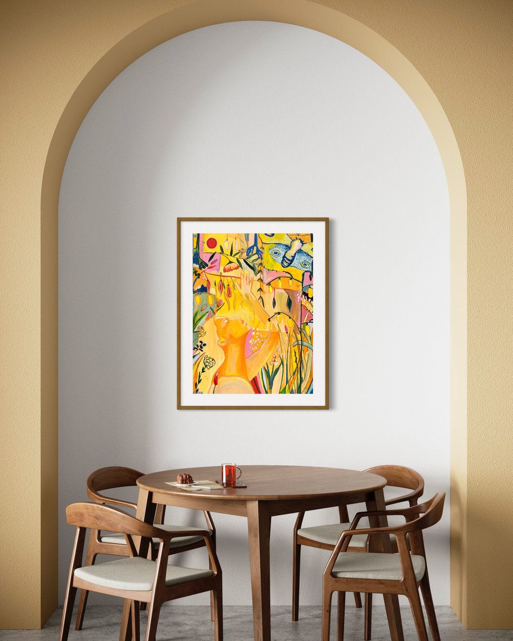 Giclée print of “The Story of The Moth & The Girl ” — printed on luxurious velvet watercolor paper, 100% cotton, acid-free paper that delivers long-lasting, archival prints. This paper is soft yet sturdy with a slight texture. There is no added border or matte.