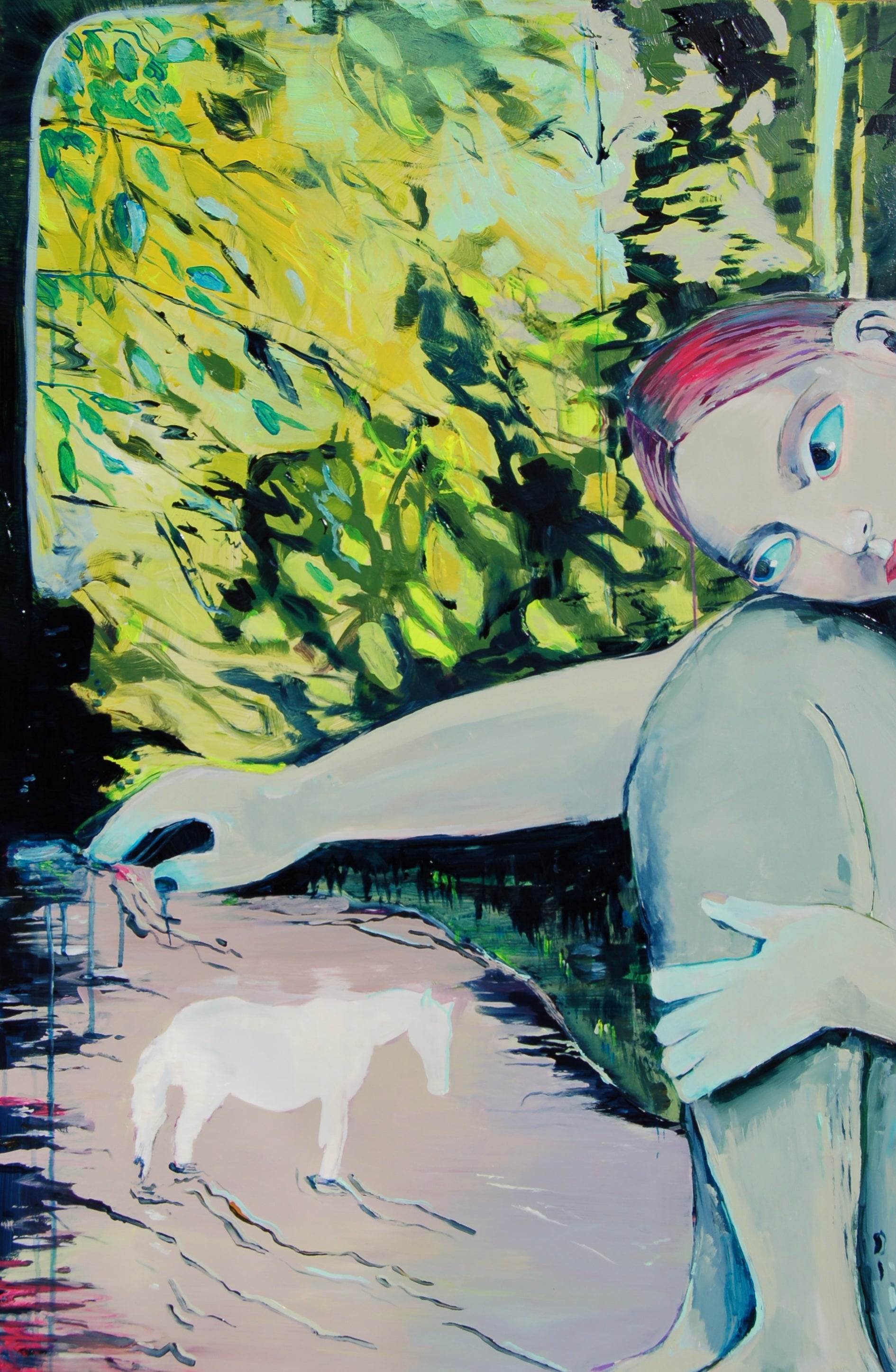 I'm continuing to crawl toward more mysticism and fantasy, wanting to merge my own memories into my world-building—something I've enjoyed participating in since I was little. Lately, I've been enjoying painting on panel and the different approach it offers my practice. The paint behaves much differently on it than it does on cloth or canvas, picking up more texture and feel—perfect for a moment in the thicket!